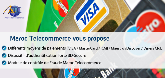 La solution de paiement MarocTelecommerce est une référence du paiement en ligne au Maroc, utilisée par les plus grandes sociétés marocaines sur internet: Pour plus d'information, rendez-vous sur: www.maroctelecommerce.com