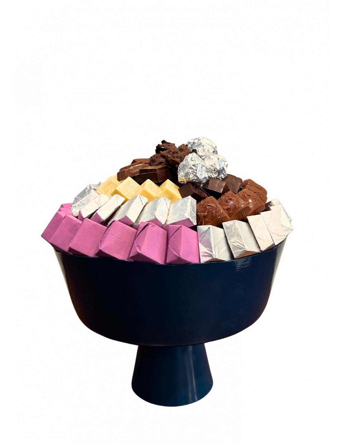 un  assortiment de pralines de chocolat dans une belle coupe sur pieds